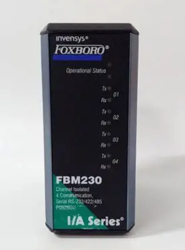 FOXBORO FBM230 P0926GU is a high-performance fieldbus module launched by Schneider Electric's Foxboro brand. It belongs to the I/A Series distributed control system (DCS) core component and is compatible with Foxboro Evo ™ System. As a key communication bridge between on-site equipment and control centers in industrial automation systems, this module is designed for harsh industrial environments and has powerful signal processing, protocol conversion, and data transmission capabilities. It can accurately collect process parameters such as temperature, pressure, and flow rate, and reliably issue control system instructions to the executing agencies to achieve real-time monitoring and closed-loop control of the production process.
