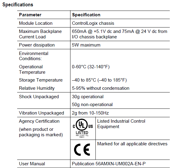 The 56AMXN is NOT suitable for use in hazardous locations.Products marked “CL I, DIV 2, GP A, B, C, D” are suitable for use in Class I Division 2 Groups A, B, C, D, Hazardous Locations and nonhazardous locations only. Each product is supplied with markings on the rating nameplate indicating the hazardous location temperature code. When combining products within a system,the most adverse temperature code (lowest “T” number) may be used to help determine the overall temperature code of the system. Combinations of equipment in your system are subject to investigation by the local Authority Having Jurisdiction