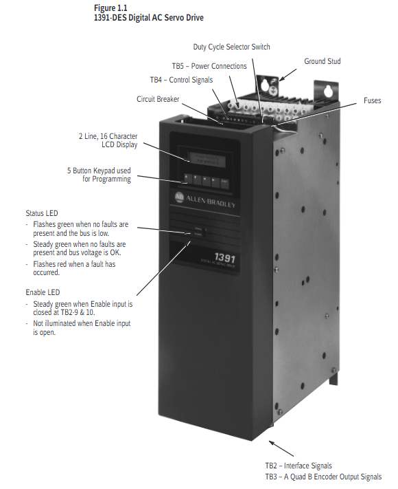 1391-DES is a digital programmable single axis AC servo drive that is compatible with Allen Bradley 1326 series AC servo motors. It is mainly used in closed-loop positioning systems such as machine tools and automation equipment (such as IMC S-class and MAX controllers), and supports speed and torque control modes.