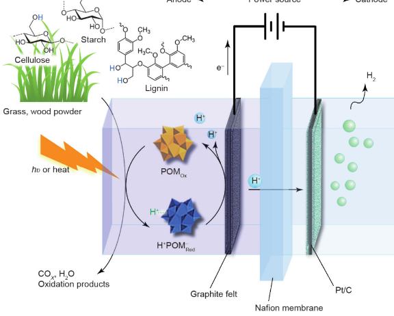 In order to overcome the difficulties presented by traditional technologies, MFC has gained the attention of the scientific community in the past 10 years. This type of fuel cell can generate electricity from organic biomass. MFC is a heterogeneous reactor that uses microorganisms to convert organic compounds into electrical energy at low temperatures. In lignocellulosic biomass-based MFC, the biomass is first converted into fuels in the form of glucose, xylose, acetate, etc., for further oxidation reactions by microorganisms. The MFC consists of two electrolytic chambers, where two electrodes are separated by a semi-permeable membrane (proton exchange membrane (PEM) or anion exchange membrane (AEM)), and an external circuit. Microbial oxidation of fuel in anode chamber, typical products are CO2, protons and electrons. The electrons are captured by the anode and enter the cathode through the external circuit, while the protons on the anode enter the cathode through the membrane, and combine with the oxygen in the cathode and the electrons in the external circuit to form water. The potential difference between the cathode and the anode produces electrical energy. The microbes act as a "bridge" between the chemical and electrical energy of the fuel. In the process of oxidizing fuel into metabolites, the microbes in MFC gain energy by transferring the electrons produced in this process. However, in order to obtain a complete anode electron transfer mechanism, further investigation is needed.