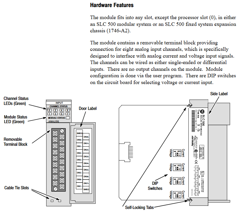 -Comes with a detachable terminal block (spare part number 1746-RT25G) for easy wiring and maintenance;
