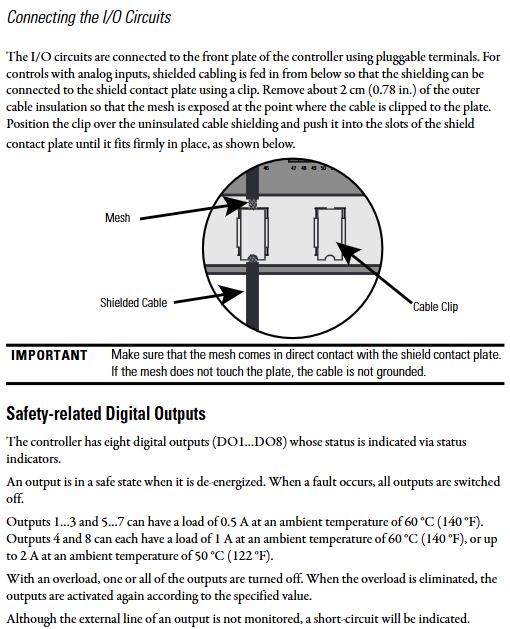 Safety feature: In the event of a fault, all outputs are forced to shut down (in a power-off safety state), and there is no monitoring of the external circuit. However, a short circuit will trigger a fault indication.