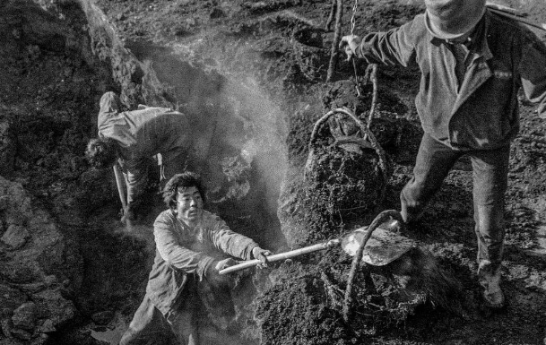 Wulong coal slime field, workers are digging coal slime. Photography is by Zhang Kuiwu
