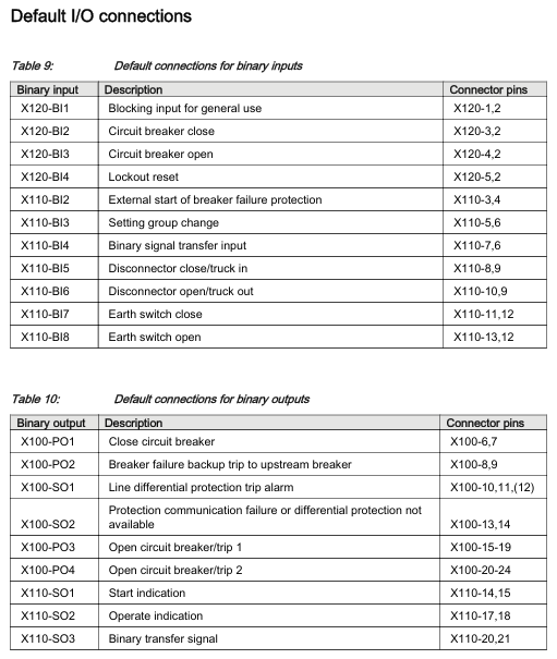 Circuit breaker failure protection (CCBRBRF1, 51BF/51NBF): When the circuit breaker is not opened after the protection action, a trip command is sent to the upstream circuit breaker;