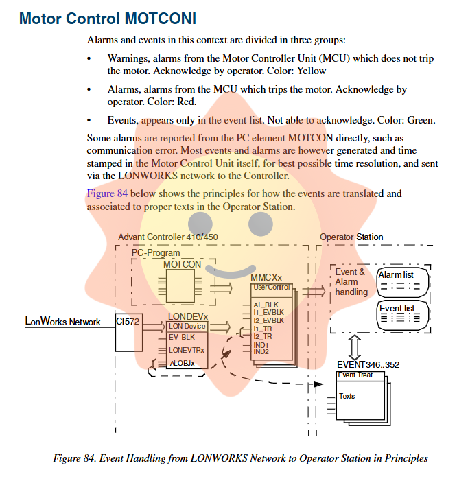 Controller layer: In the Advant Master controller, each process object has an event handling pointer (such as ERR_TR, LIM1_TR), which points to the number of an event handling database element (EVENT).