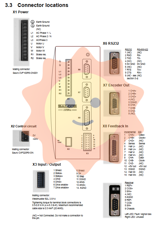 Proper mechanical installation is a prerequisite for ensuring long-term stable operation of the drive. MicroFlex should be installed vertically on the back of the drive and fixed on a smooth vertical metal surface. The manual emphasizes the importance of cooling airflow. Although the 3A model can operate under natural cooling, the 6A and 9A models must be equipped with forced air cooling in ambient temperatures above 45 ° C. The cooling airflow must pass vertically through the drive housing, flowing from the bottom to the top to prevent local hotspots. In addition, the spacing between devices should also be considered during installation. If multiple drivers are installed side by side, the upper and lower spacing should meet specific requirements (such as 90mm above and 15mm on the side) to avoid thermal effects.