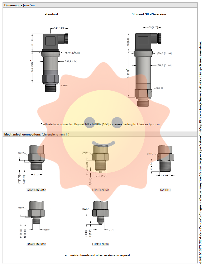 Mechanical interface: Pressure interface thread specifications (metric, imperial, etc.).