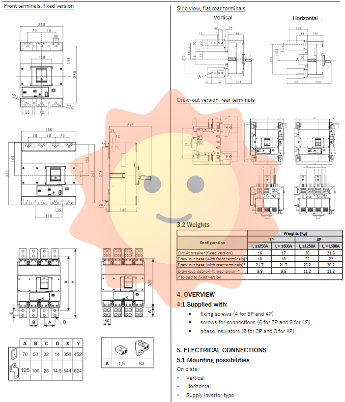 Fixed circuit breaker (4P) 20 kg (1250A)/21.5 kg (1600A)