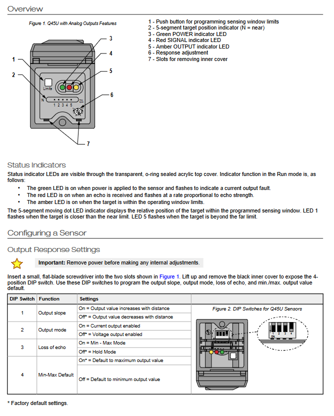 The response speed of Q45U is set through a single turn potentiometer (with a slot located below the inner cover). The potentiometer has 6 positions corresponding to different average output cycles. The faster the response speed, the greater the measurement noise; The slower the response speed, the smoother the output.