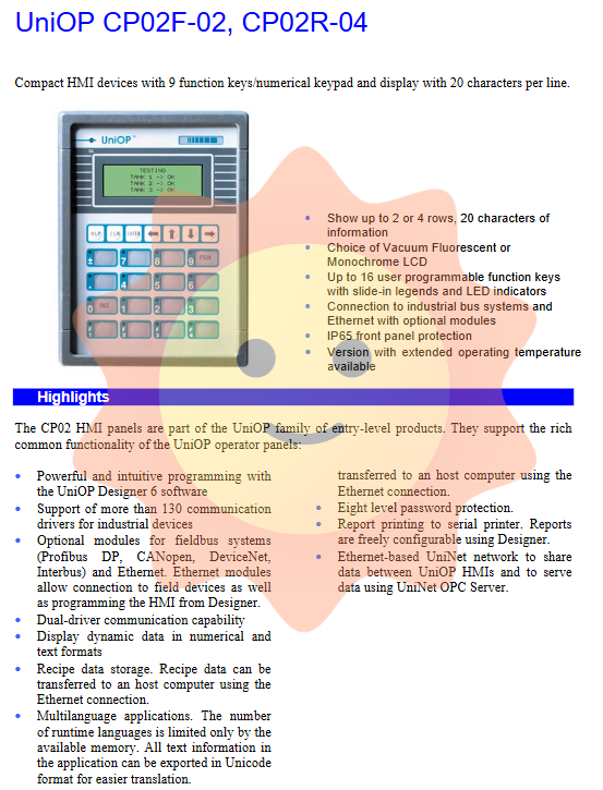 The CP02 series supports UniNet networks based on Ethernet and can achieve the following functions: