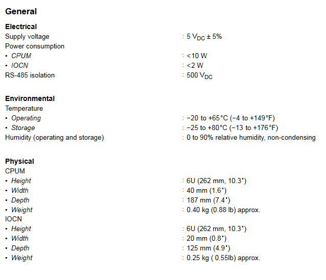 Physical dimension height: 6U (262mm); Width: 40mm; Depth: 187mm; Weight: Approximately 0.40kg (0.88lb)