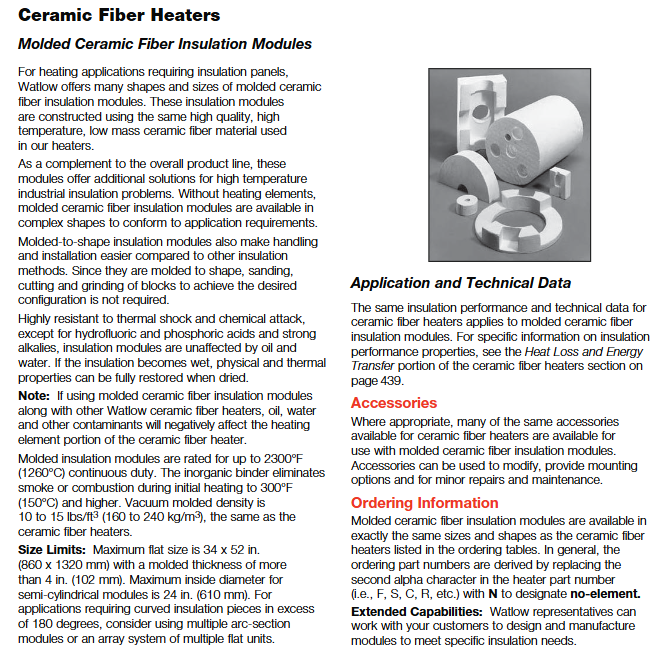 -Optimal insulation performance -1500-2000 ° F (815-1093 ° C) low power density, low duty cycle operating conditions, small tube furnaces, laboratory equipment