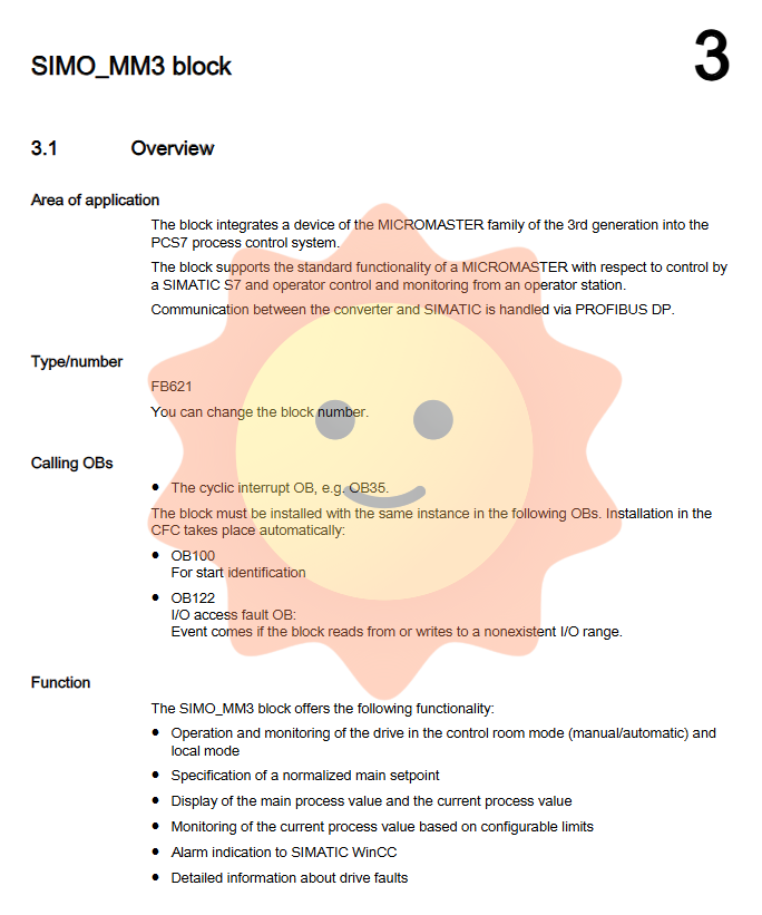 The Siemens Drive ES PCS7 block library is a key component used in the SIMATIC PCS7 process control system to integrate multiple drive devices. Among them, the SIMO-MM3 function block (FB621) is specifically designed to seamlessly integrate the third-generation MICROMASTER series frequency converters into the PCS7 environment, achieving centralized monitoring, operation, and maintenance of drive equipment. This article is based on the official configuration manual and systematically elaborates on the design principles, functional characteristics, configuration methods, and practical applications of the SIMO-MM3 block, providing a complete set of technical integration guidelines for automation engineers.