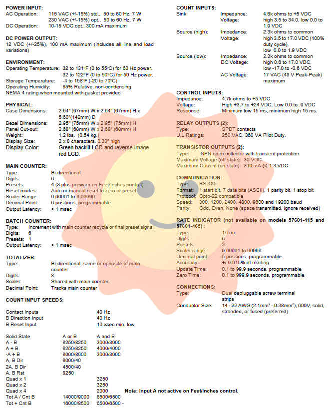 8.5 Speed Meter Specifications (Non Foot/Inch Models)