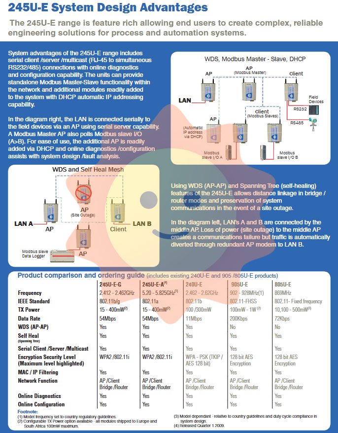 In addition, the device supports broadcast/control mode selection, point-to-point/point to multipoint communication, WDS relay, Modbus gateway, serial multicast and other functions to meet the requirements of complex industrial networks.