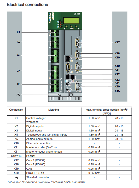 CAN/CANopen (X19): Supports CAN 2.0A and CANopen protocols, used to connect relatively simple sensors, encoders, or specialized modules.