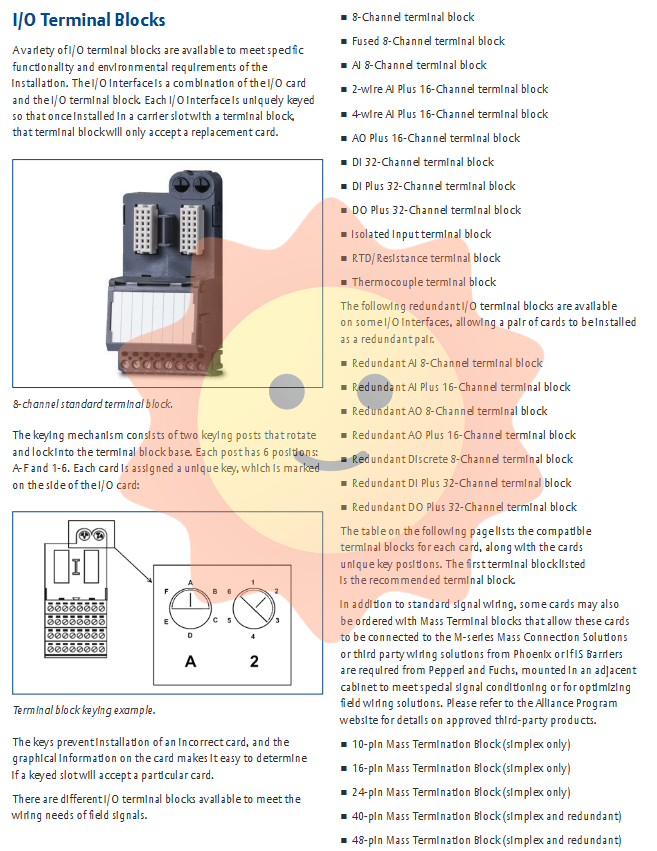 DeltaV Traditional I/O offers a wide range of terminal block options to meet different field wiring needs: