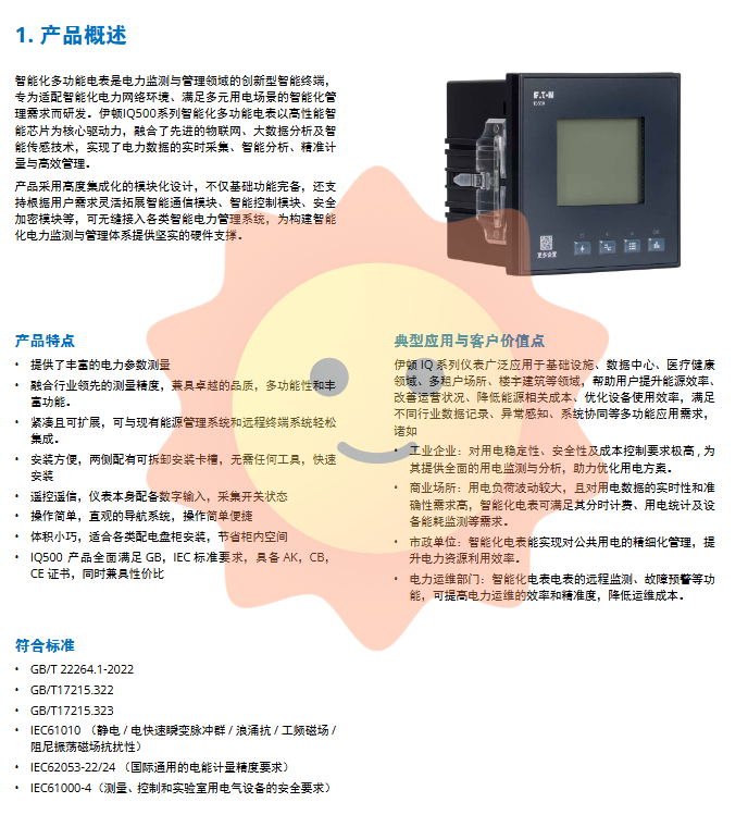 In today's era of digital transformation sweeping across various industries, intelligent management of the power system has become a key link in improving energy efficiency and ensuring power supply reliability. Eaton, as a global leader in intelligent power management, has launched the IQ500 series intelligent multifunctional electric meter with its century long accumulation of electrical technology, which is an innovative response to this trend.