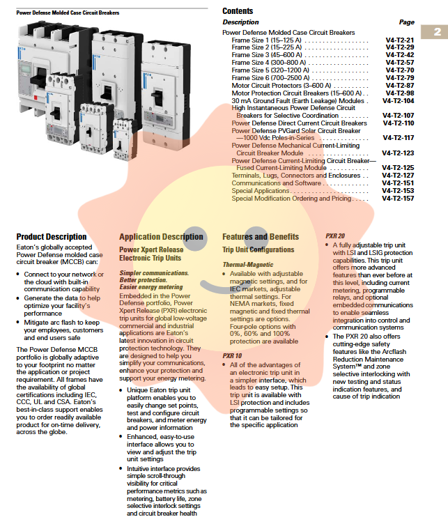 PD-2 15-225 A Thermal Magnetic/PXR 10/20 1-4P Standard Type, Optional Ground Fault Protection