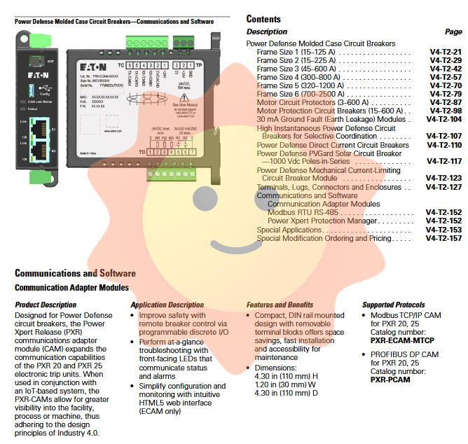 Power Defense is not only a protective device, but also a node of intelligent distribution network. PXR 20/25 supports accessing the following networks through CAM (Communication Adapter Module):