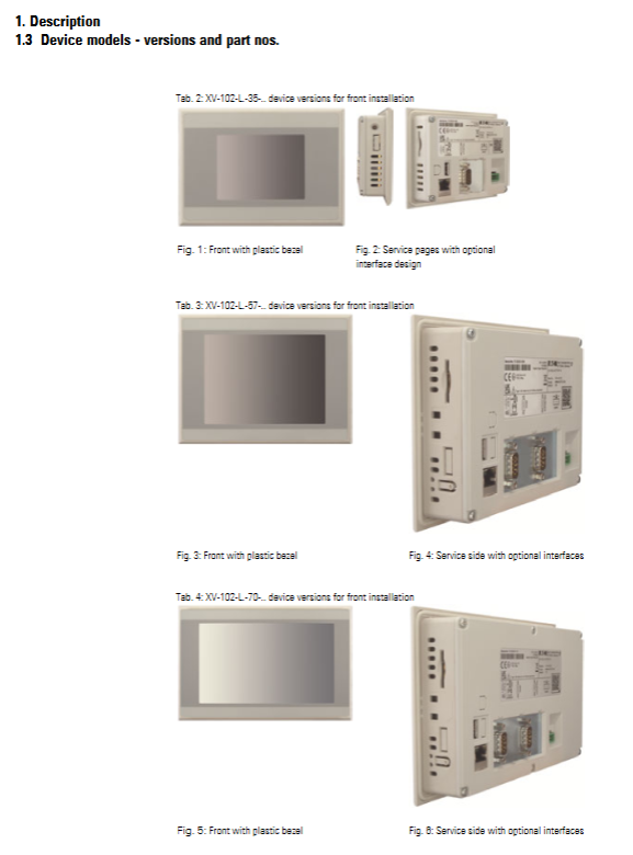 XV-102-L has the following interface combinations on board (marked on the nameplate) depending on the model: