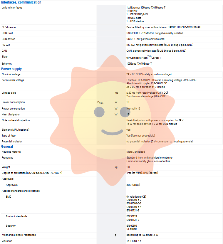 The equipment meets the requirements of IEC/EN 61131-2 standard for industrial control equipment and can withstand: