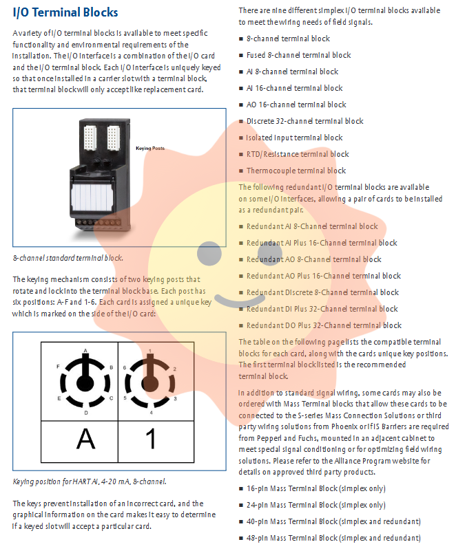 The S series traditional I/O needs to be used in conjunction with SQ or SX series controllers and S series horizontal carriers. Starting from DeltaV v11.3.1, S-series and M-series controllers can coexist in the same control network. The Plus series cards require DeltaV software version v13.3 or higher. The S series I/O does not support vertical carrier, and vertical installation applications require electronic wiring technology with CHARMS I/O.