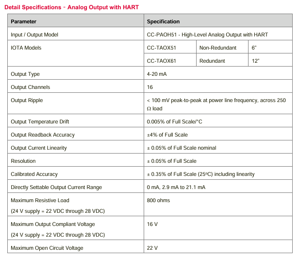 CC-PAIH51 with HART protocol 16 current only (4-20mA, 200 Ω load) full single ended channel, no voltage/differential input, supports HART device configuration