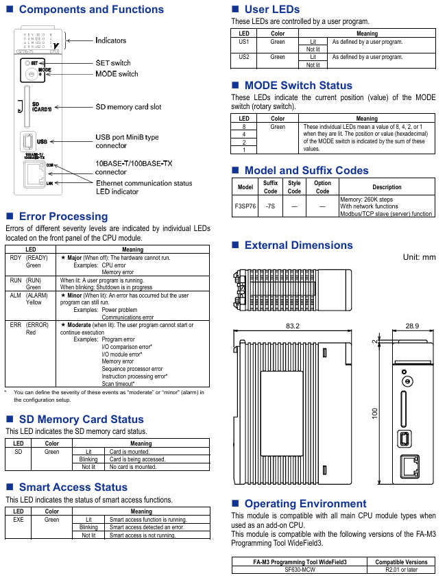 CPU - Storage: F3SP22-0S with RK33/73 ROM module; F3SP71/76 with SD card (32GB max).