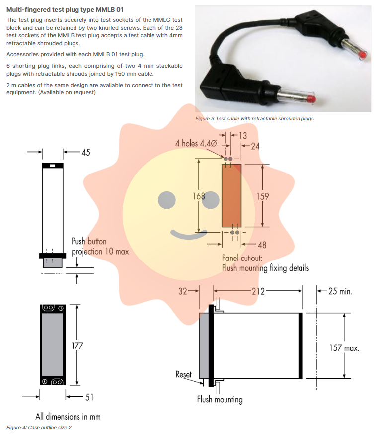 Attachment: Each set of MMLB 01 plugs comes standard with 6 short-circuit wires (consisting of two 4mm stackable shielded plugs and 150mm flexible wires), used to pre short-circuit the CT circuit before insertion. Longer 2-meter test leads can be ordered separately.