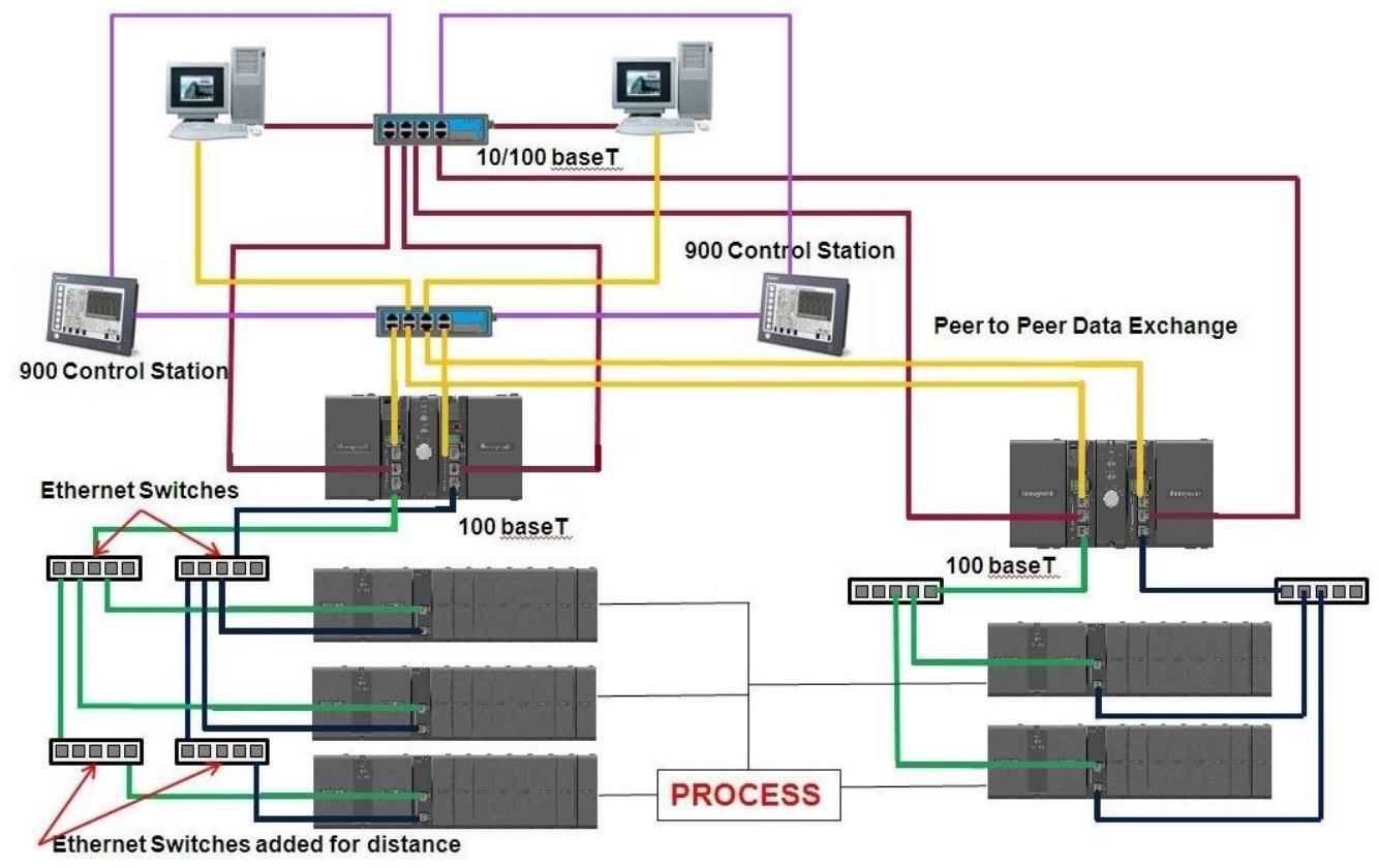 Non redundant architecture: including single process/single rack (process), single process/single rack (safety), single process/multi remote rack (safety), multi process/multi rack (process), multi process/multi rack (redundant network star topology), multi process/multi rack (redundant network ring topology), etc.