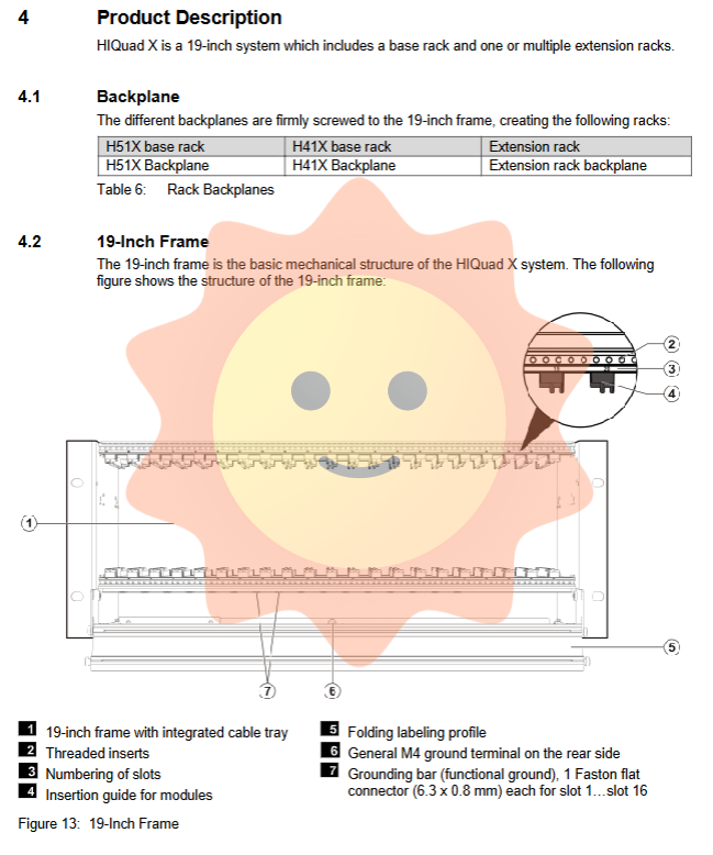 Grounding and shielding: The surface of the system components has been treated with conductive chrome plating to achieve ESD protection. The rack and cabinet frame must be effectively connected through the equipotential grounding bar (25 mm ² grounding wire) provided by HIMA.