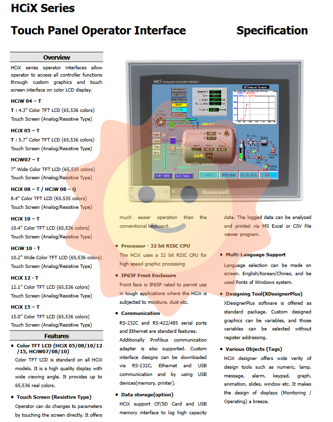 The HCIX series adopts a 32-bit RISC architecture processor with high-speed graphics processing capabilities, which can smoothly run complex animations, multi window interfaces, and real-time data updates, ensuring the response speed and smoothness of the operating interface.