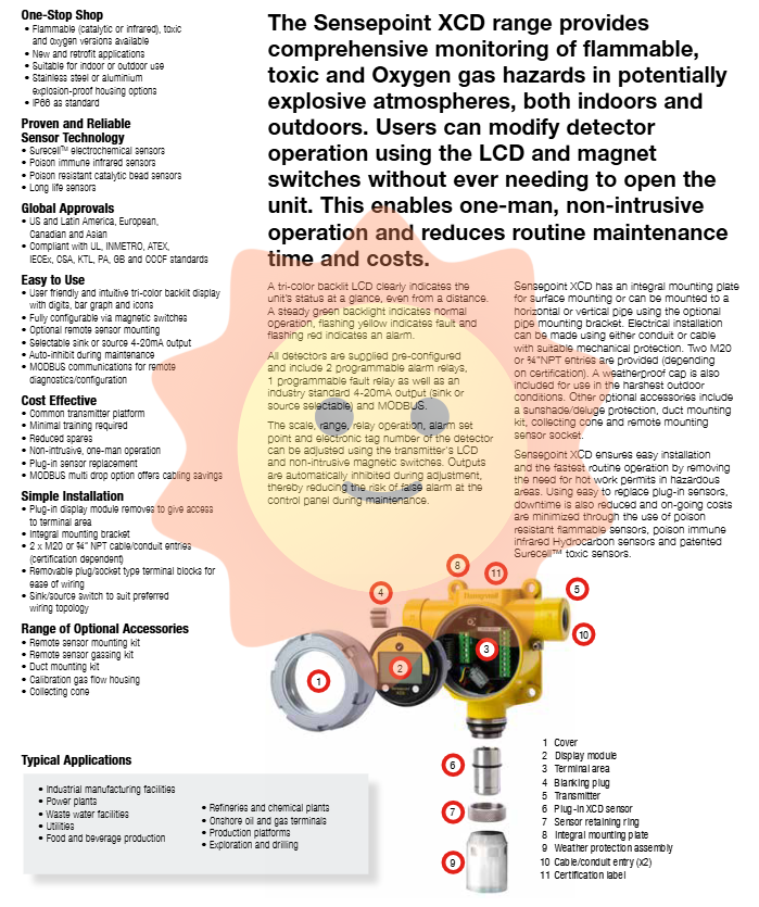 In the field of industrial safety and environmental monitoring, the reliability, ease of operation, and maintenance cost of gas detection equipment have always been the core concerns of users. The Sensepoint XCD gas detector ("XCD" pronounced as "Exceed") launched by Honeywell, as a high-performance fixed gas detector, provides comprehensive and reliable gas monitoring solutions for industries such as petrochemicals, natural gas, water treatment, metallurgy, etc. with its modular design, multiple sensing technologies, non-invasive operating interface, and global explosion-proof certification. This article will provide a comprehensive and in-depth professional interpretation from the aspects of product positioning, sensor technology, operational characteristics, installation convenience, global certification, and accessory systems.