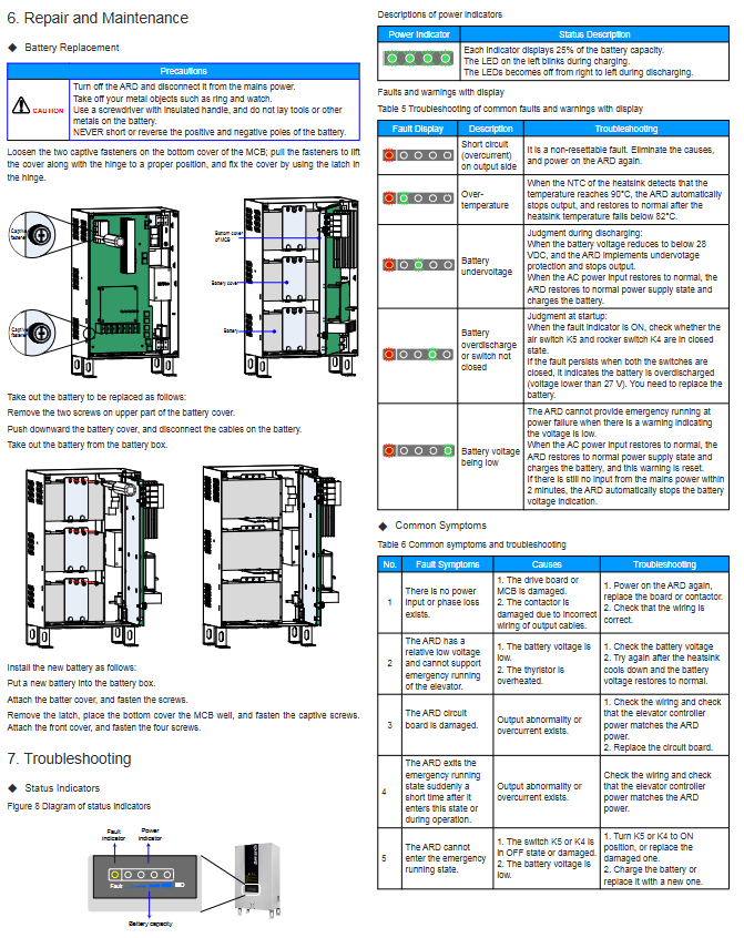 After the restoration of mains power, ARD is still in emergency mode. Phase sequence detection error and control board fault check whether the input power phase sequence is correct; Power off and restart