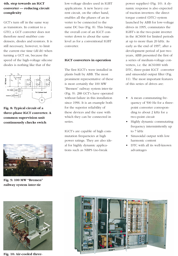 100MW Bremen railway system interconnection device: put into operation in 1996, with 288 IGCTs running without faults, verifying the high reliability and series ease of use of IGCTs.
