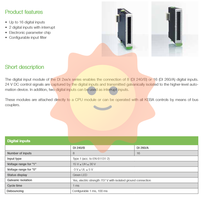 32 channel digital input: Type 1, minimum update cycle of 200 μ s, supports software debounce;