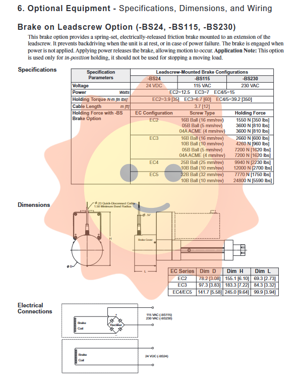Brake: Provides two options: screw brake (- BS) and motor shaft brake (- BM), used to maintain the power-off position and prevent load backdrive (reverse drive). Please note that this is a static holding brake and cannot be used for dynamic braking.