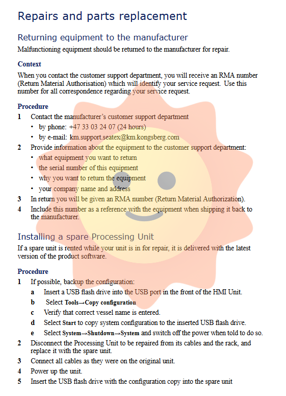 The export of MRU and MGC products must comply with the export control regulations of the Norwegian Ministry of Foreign Affairs and the US Export Administration Regulations, and may be subject to re export restrictions in the destination country.