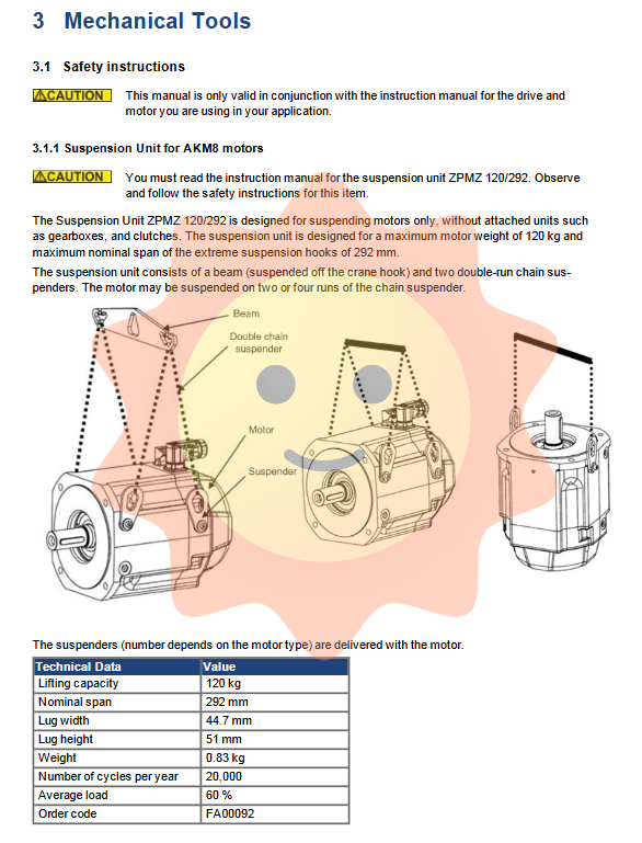 Suspension unit: used for installing heavy-duty motors (such as AKM8, maximum 120kg), strictly follow the safety instructions in its separate manual.