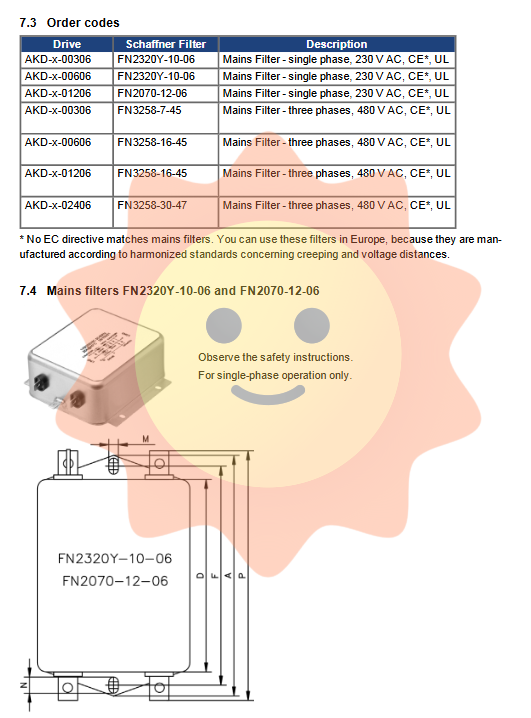 Low voltage systems (AKD-P00306 to 02406) typically require an external main power filter to meet EMC standards, and may be equipped with motor reactors to suppress long cable effects.