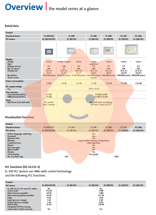 The HMI EL 100 series offers multiple model options to meet different application needs. Although the specific technical data of the model is not detailed in the document, according to the product description, the main distinguishing dimensions include: