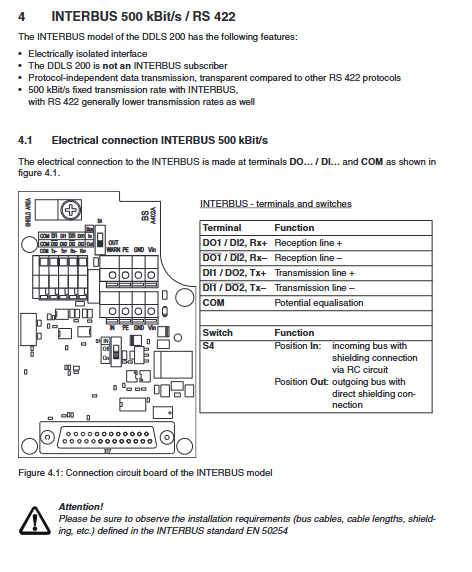 Important: The bus cable type, length, and shielding requirements in the INTERBUS standard EN 50254 must be followed.