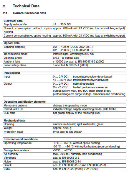 Detection distance 0.2... 120 m (DDLS 200/120...); 0.2 … 200 m(DDLS 200/200…)