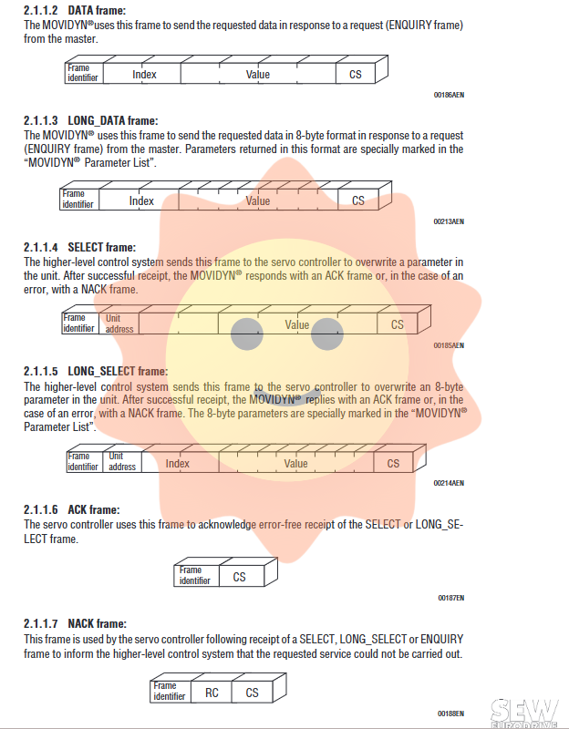 To achieve short message, fast response, easy portability, and scalable data transmission, MOVIDYN ®  The serial interface adopts a custom protocol and defines 7 frame types: