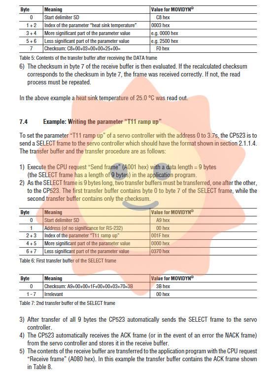 The API/APA option card uses ASCII protocol, and user data is readable ASCII commands. Its message header is related to MOVIDYN ® The protocol is different, and the frame identifier is fixed as BB hex.