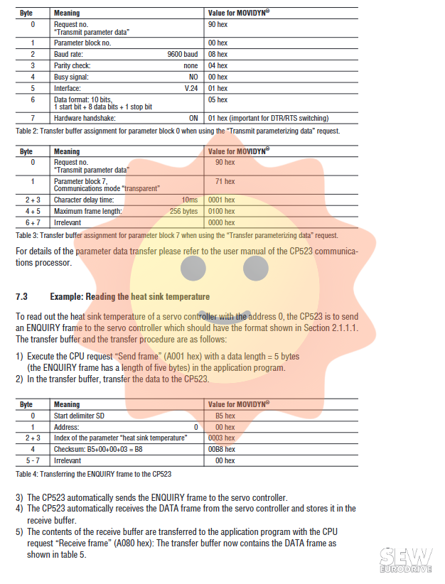 The communication adopts the master-slave principle: the upper controller (PC, PLC, IPC) serves as the master station, MOVIDYN ® As a slave station. The slave station never initiates sending and only responds to requests from the master station. The main station always controls the communication link.