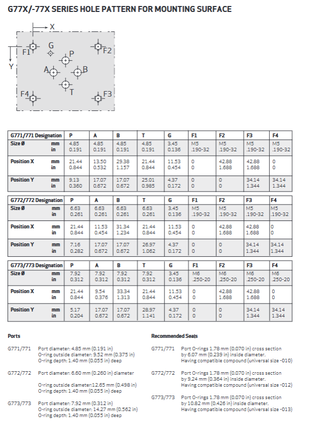 G771: Port diameter 4.85 mm, using O-ring (section 1.78 mm, inner diameter 6.07 mm, size -010)