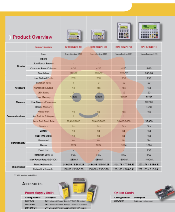 KPD-KG840-10:8 line x40 character display, resolution 240x64, supports battery backup and real-time clock, IP65 protection level.