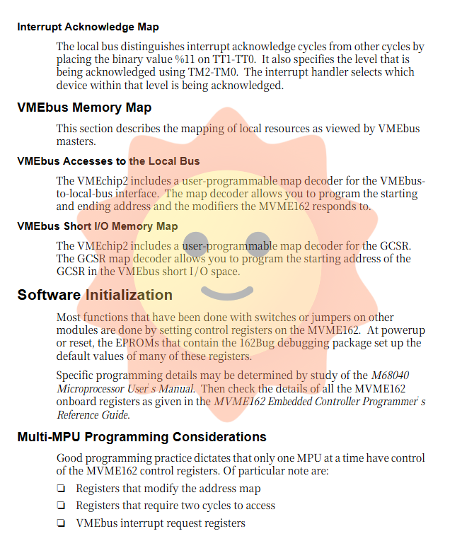 Watchdog timer: Both MCchip and VMEchip2 integrate a watchdog, which can trigger a system reset or local reset upon timeout.